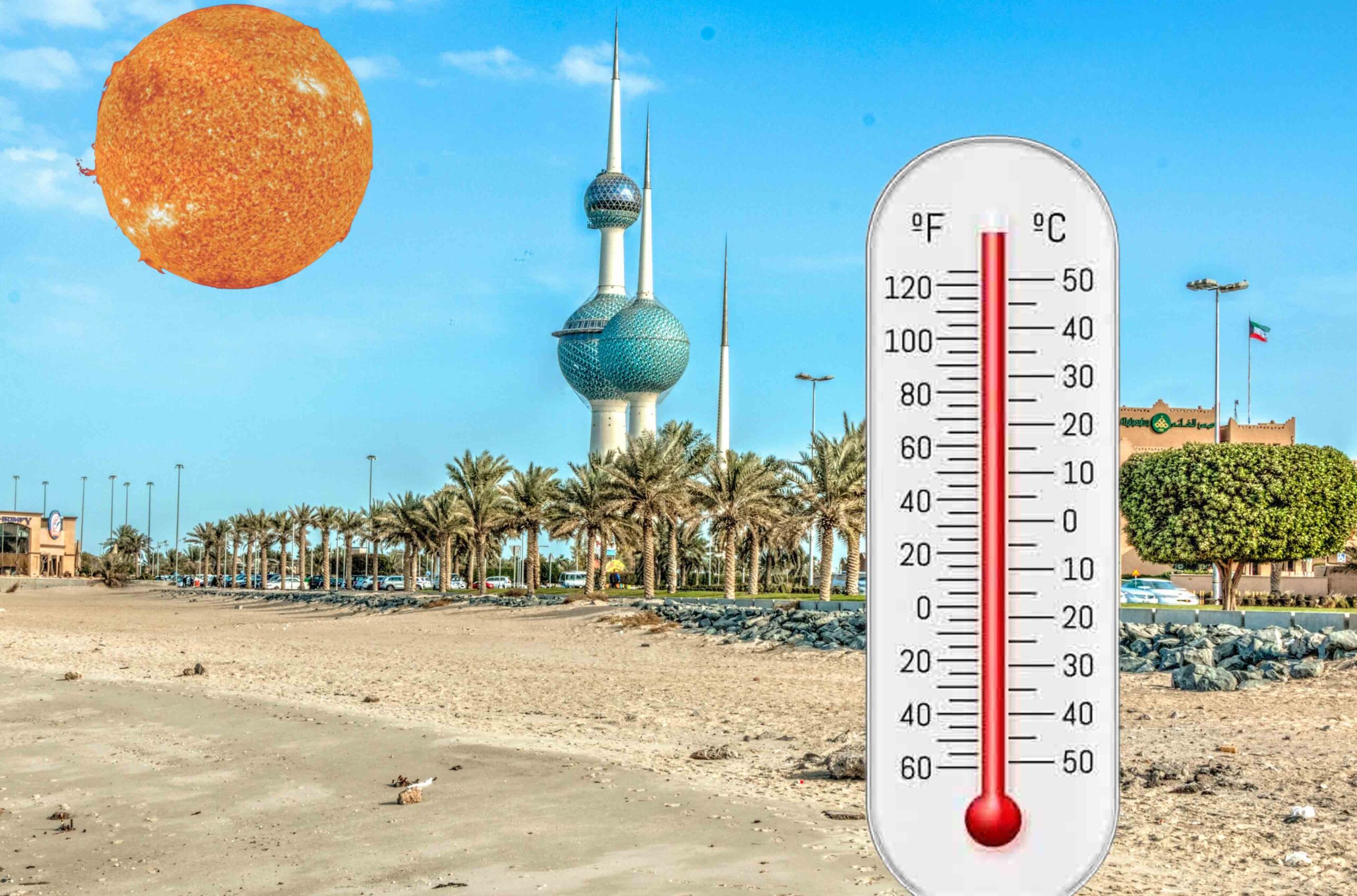 আবহাওয়া বিভাগের ভারপ্রাপ্ত পরিচালক ধরর আল-আলি ব্যাখ্যা করেছেন যে দেশটি বর্তমানে একটি বর্ধিত ভারতীয় মৌসুমী নিম্নচাপের প্রভাবে রয়েছে, যা অত্যন্ত গরম বায়ুপ্রবাহ নিয়ে আসছে। ফলস্বরূপ, কুয়েতে দিনের বেলায় আবহাওয়া অত্যন্ত গরম এবং রাতে আজ এবং আগামীকাল গরম থেকে অতি গরম পরিস্থিতি অনুভূত হবে।