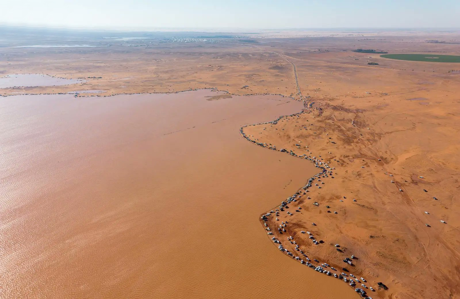 মৌসুমি বৃষ্টিপাতের ফলে সৌদি আরবের পূর্ব কাসিমের রাওদাত মুহান্না নিম্নচাপ একটি বিশাল অভ্যন্তরীণ হ্রদে রূপান্তরিত হয়েছে, যা সাম্প্রতিক সময়ে মরুভূমিতে হাজার হাজার দর্শনার্থীকে আকর্ষণ করেছে।