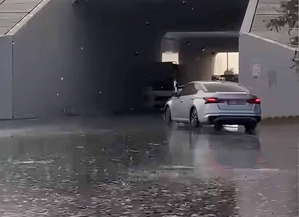 সোশ্যাল মিডিয়ার ভিডিওগুলি আল আইনে আবহাওয়ার তীব্রতা দেখায়। বৃষ্টি-ধোঁয়াটে রাস্তা দিয়ে গাড়িগুলো এগিয়ে যাচ্ছিল, উইন্ডশিল্ড ওয়াইপারগুলো একটানা ঘুরছিল।