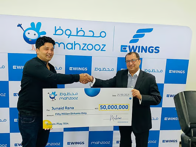 পাকিস্তানি প্রবাসী জুনায়েদ, জ্যাকপটটি যখন পেয়েছিলেন তখন তার বয়স ছিল মাত্র ৩৬। তিনি একজন কর্পোরেট ড্রাইভার হিসেবে কাজ করতেন এবং মাসে ৬,০০০ দিরহাম আয় করতেন। যেদিন তিনি বিজয়ী টিকিটটি বেছে নিলেন, সেদিন তিনি মুদি দোকানে ছিলেন এবং কিছু খাবার কেনার পরিবর্তে তার টাকা দিয়ে টিকিট কিনেছিলেন। তিনি জন্মদিন, বার্ষিকী বা ভাগ্যবান সংখ্যার কথা ভাবেননি বরং এলোমেলোভাবে সংখ্যাগুলি নির্বাচন করেছিলেন এবং বিজয়ী সংখ্যাগুলি পেয়েছিলেন (৬, ১১, ২১, ৩২, ৩৩, ৪৬)।