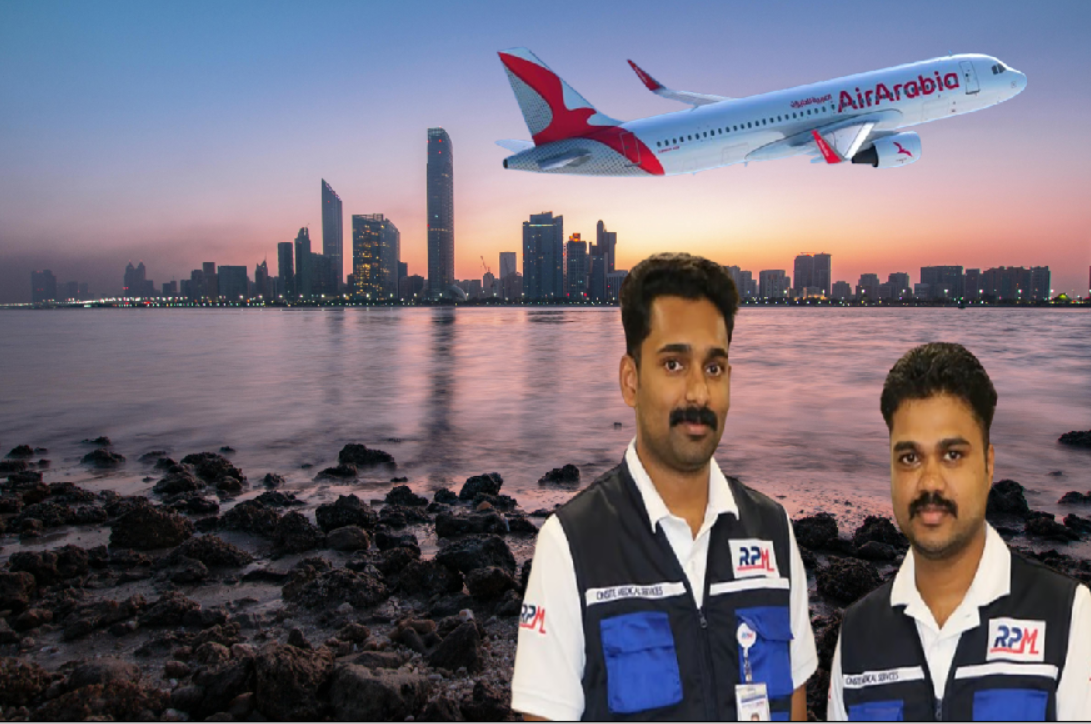 ওয়ানাডের ২৬ বছর বয়সী অভিজিৎ জিস এবং চেঙ্গান্নুরের ২৯ বছর বয়সী অজীশ নেলসন, কোচি থেকে আবুধাবিতে এয়ার এরাবিয়ার ফ্লাইট ৩এল১২৮-তে ভ্রমণ করছিলেন, নতুন নিয়োগপ্রাপ্ত রেজল্যুশন প্লাস মেডিকেল (RPM) – সংযুক্ত আরব আমিরাতের বৃহত্তম জরুরি এবং অনসাইট চিকিৎসা পরিষেবা প্রদানকারী হিসেবে তাদের প্রথম আন্তর্জাতিক ভ্রমণের জন্য। ফ্লাইট শুরুর মাত্র ২০ মিনিটের মধ্যেই তাদের প্রশিক্ষণ এবং সাহস চূড়ান্ত পরীক্ষার সম্মুখীন হয়।
