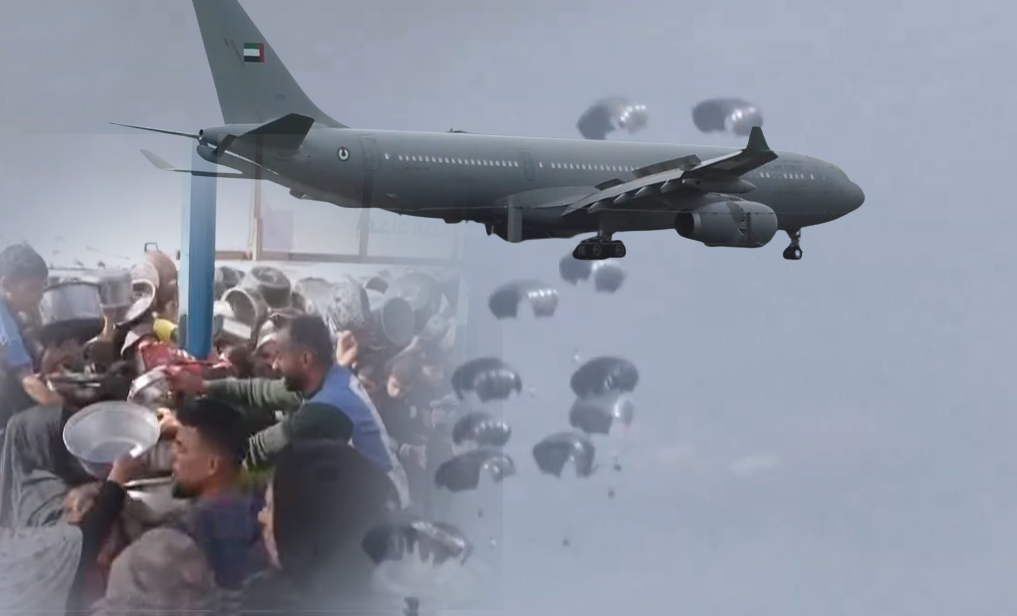 যু**দ্ধবিধ্বস্ত ছিটমহলে মানবিক পরিস্থিতির অবনতি ঘটতে থাকা অবস্থায় রয়েল জর্ডানিয়ান বিমান বাহিনী এবং সংযুক্ত আরব আমিরাতের বিমান বাহিনীর সি-১৩০ বিমান ব্যবহার করে যৌথ অভিযানে ২৫ টন খাদ্য এবং মৌলিক প্রয়োজনীয় জিনিসপত্র বিমানে তুলে ধরা হয়েছে।