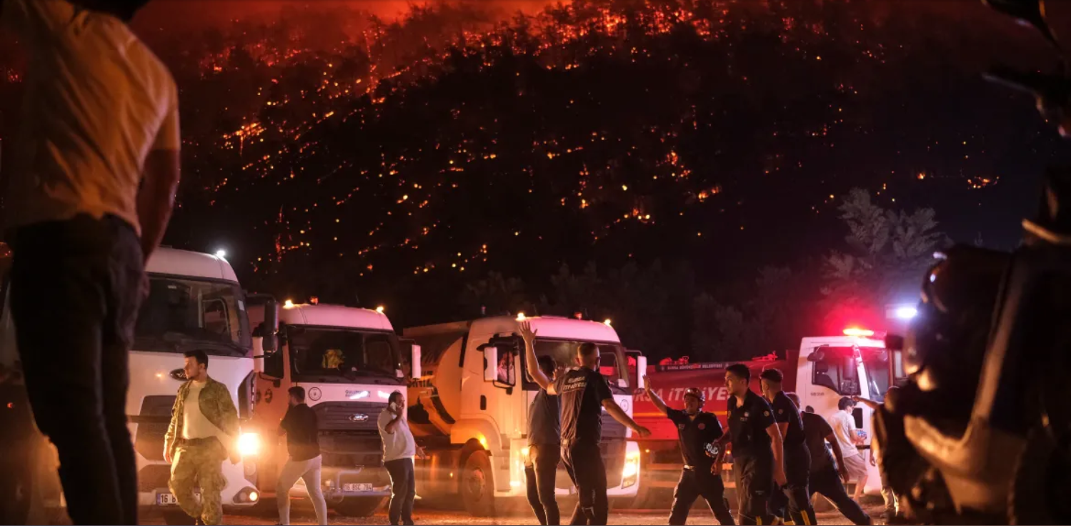 অসময়ে উচ্চ তাপমাত্রা, শুষ্ক আবহাওয়া এবং তীব্র বাতাস দাবানলের ইন্ধন জোগাচ্ছে, তুরস্ক এবং পূর্ব ভূমধ্যসাগরের অন্যান্য অংশে রেকর্ড ভাঙা তাপপ্রবাহ দেখা দিয়েছে।