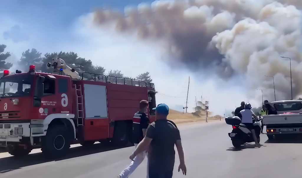 শনিবার উত্তর-পশ্চিমাঞ্চলীয় কানাক্কালে প্রদেশে আগুনের সূত্রপাত হয় এবং ব্যস্ত জাহাজ চলাচল প্রণালীর তীরে গেলিবোলু শহরের কাছে পাহাড়ে তীব্র বাতাসের কারণে দ্রুত ছড়িয়ে পড়ে।